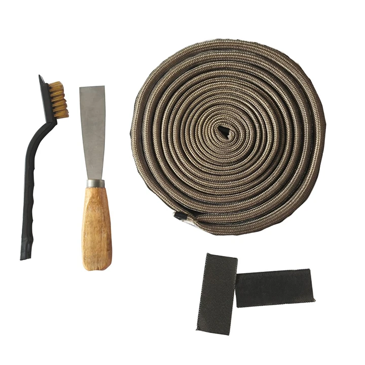 Gebruik: Het oude vilt dient zorgvuldig met de bijgeleverde krapper en borstel te worden verwijderd. Zorg dat er geen lijmresten meer aanwezig zijn en zorg dat de rand van zowel de Kamado zelf als de Dome (deksel) goed stof- en vetvrij is. Voordat je begint met plakken, meet even of het band goed past (dus voordat je het plaktape verwijdert). Als dat zo is knip of snijdt dan op de juiste lengte met een goede schaar of scherp mes, plak het band op de dome en zorg ervoor dat het begin en eind bij het scharnierende punt is. Verbind het begin en einde met het extra meegeleverde verbindingsstuk en plak dit goed vast. Voor de Kamado zelf hanteer je dezelfde werkwijze. Let op dat je het begin en eindstuk iets laat verspringen ten opzichte het verbindingsstuk op de dome om een goede luchtdichting te bewerkstelligen.