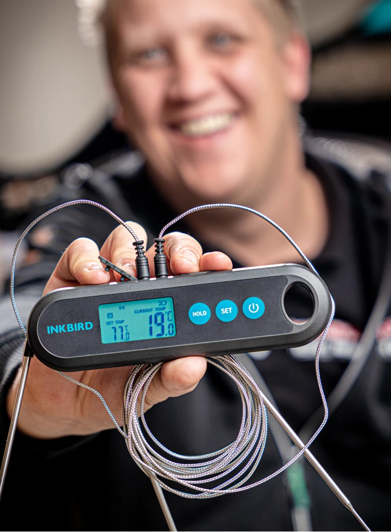 De INKBIRD IHT-2PB is een handige Bluetooth vleesthermometer ontworpen met twee externe sondes met functies zoals auto-sleep, temperatuuralarmen, countdown timers en temperatuurkalibratie, die een goede buddy is voor grillen en dagelijks gebruik.